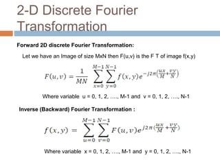 2d discrete fourier transform in image processing. There are any references about 2d discrete fourier transform in image processing in here. you can look below.
