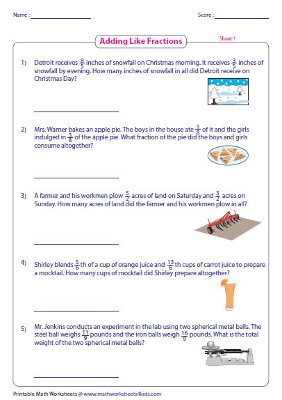 addition of fractions word problems with answers pdf grade 6