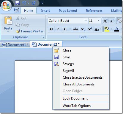 can you add tabs to a word document like in excel