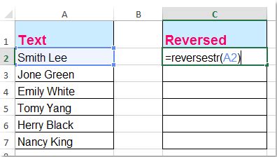 can you reverse the order of text in excel