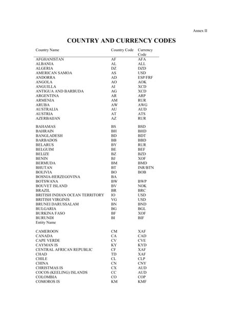 country code and currency code. There are any references about country code and currency code in here. you can look below.