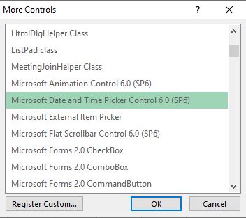 excel date and time picker control 6.0