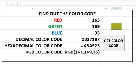 excel formula to get color code