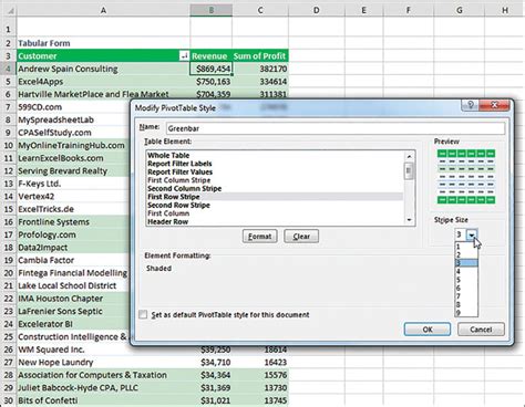 excel modify pivot table style