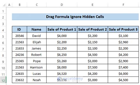 hidden cells formula in excel