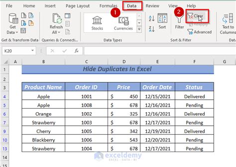 hide duplicates in sheets