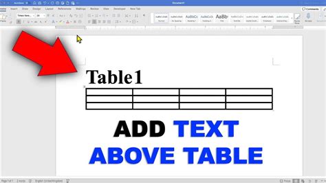 how to add a line of text above a table in word