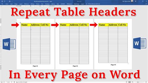 how to add header of table on each page in word