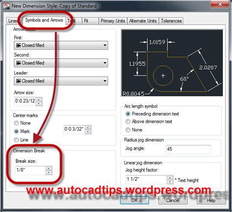 how to break a dimension line in autocad