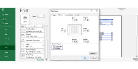 how to center a chart in excel when printing