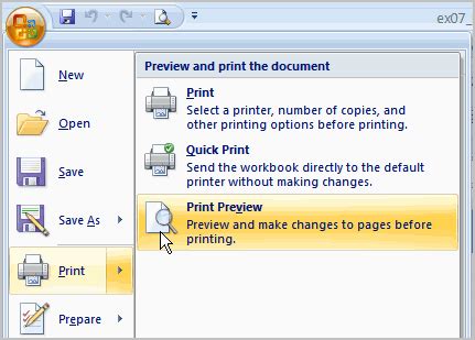 how to check print preview in excel 2007