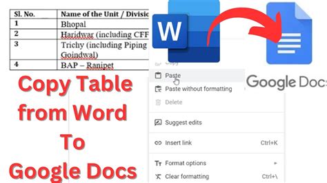 how to copy table from word to google docs