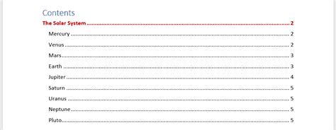 how to create contents page in ms word