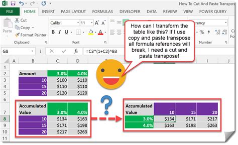 how to cut and paste transpose in excel