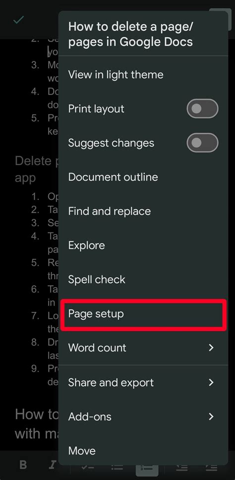 how to delete page in google docs in mobile