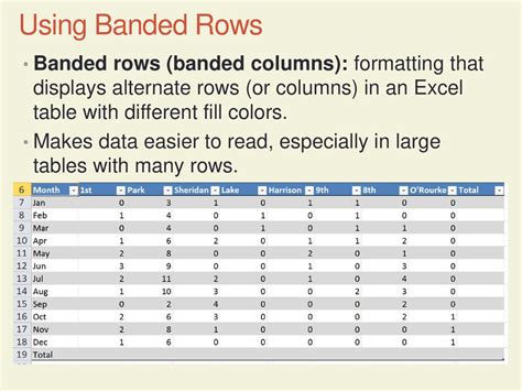 how to display banded rows and columns in excel