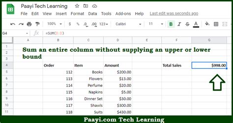 how to do sum of entire column in sheets