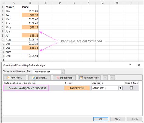 how to exclude blank cells from conditional formatting