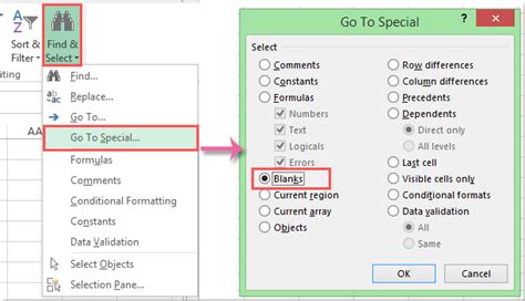 how to fill all blank cells in excel with null