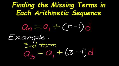 how to find the missing term or terms in each arithmetic sequence. There are any references about how to find the missing term or terms in each arithmetic sequence in here. you can look below.