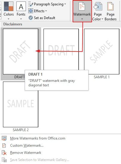 how to get draft watermark on all pages in word