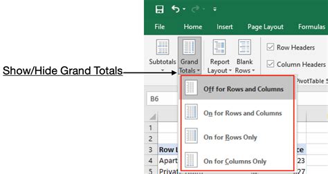 how to hide total rows in pivot table