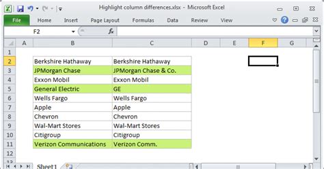 how to highlight differences in two columns in excel