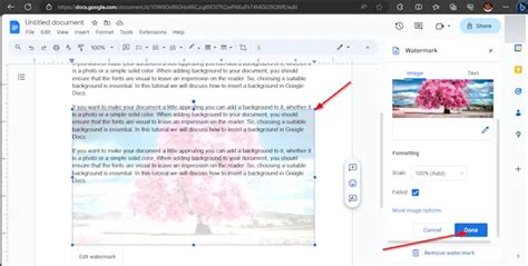 how to insert a background into google docs