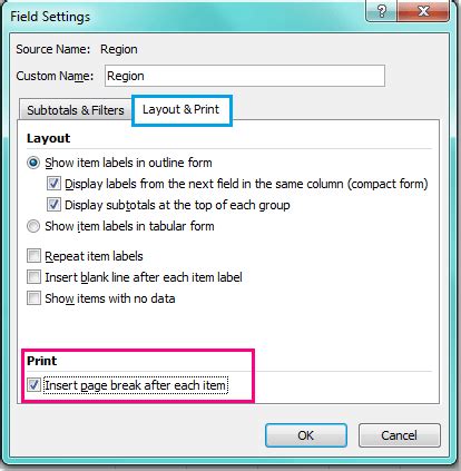 how to insert a page break in a table