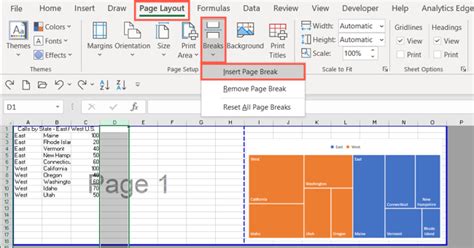 how to insert blue page breaks in excel