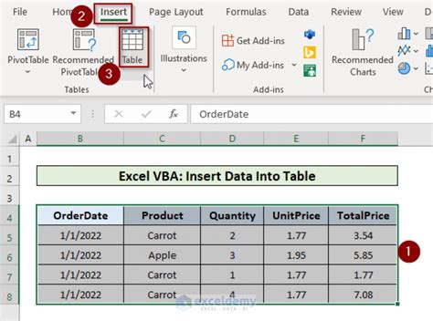 how to insert data into table in excel
