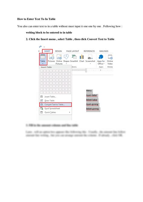 how to insert text into a table. There are any references about how to insert text into a table in here. you can look below.