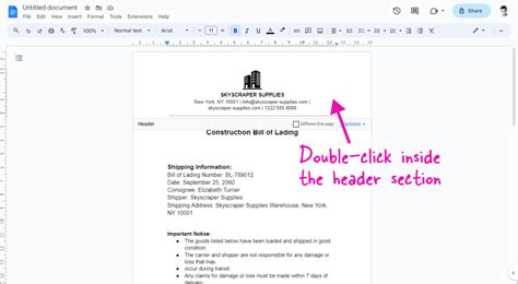 how to make header only on one page google docs