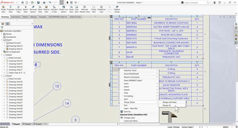 how to merge cells in solidworks drawing table