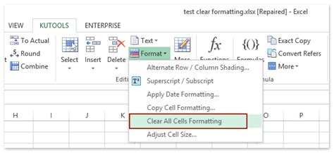 how to remove all formatting from a cell