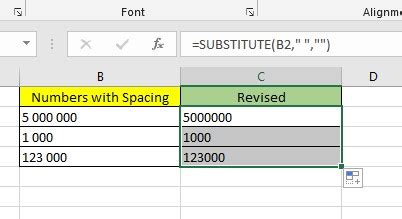 how to remove extra space in number in excel