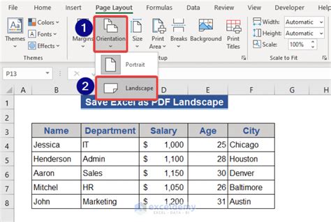 how to save excel doc as landscape pdf