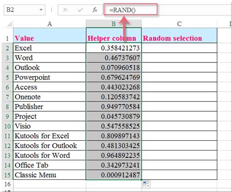 how to select a random cell from a list in excel