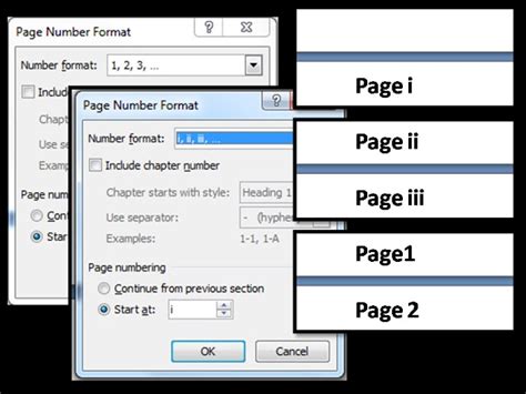 how to set different page numbers in word document