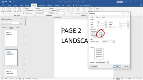 how to set different page orientation in word