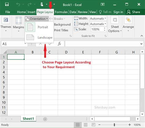 how to set page orientation in excel