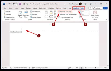 how to show header only on first page in word