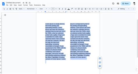 how to split a google docs page in half vertically using phone