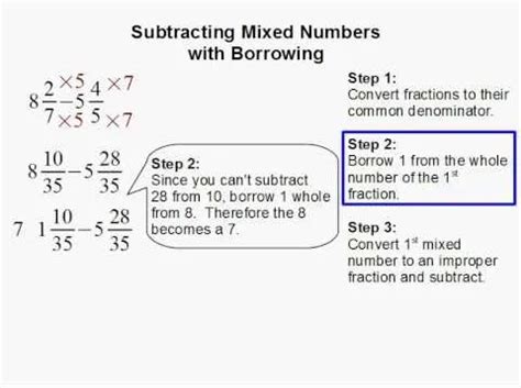 how to subtract mixed fractions with borrowing. There are any references about how to subtract mixed fractions with borrowing in here. you can look below.