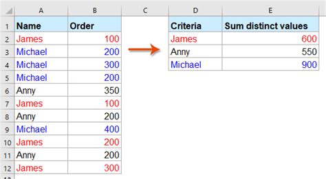 how to sum unique values in excel based on a criteria