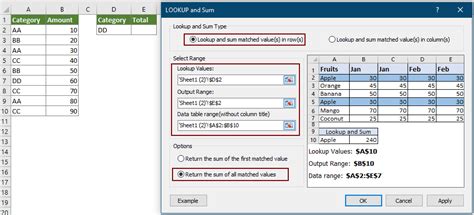 how to sum values from drop down list in excel