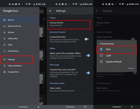 how to use dark theme in google docs