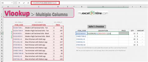 how to use vlookup for multiple columns in excel