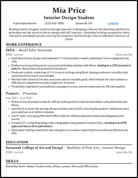 interior design student resume examples