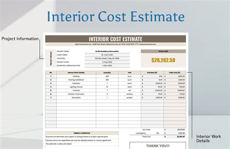 interior work estimate format in excel